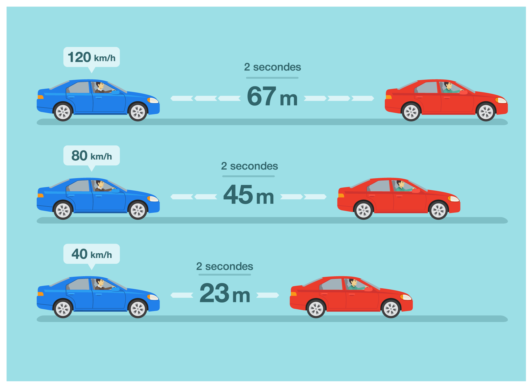 Le fait de rouler plus vite nécessite une concentration accrue du conducteur. Cela engendre une fatigue plus rapide. La fatigue est souvent un facteur d’accident. De plus, en roulant plus vite, vous augmentez l’écart de vitesse avec les autres usagers. Ce point associé à un allongement des distances de freinage est un facteur de risque important pouvant engendrer un accident.